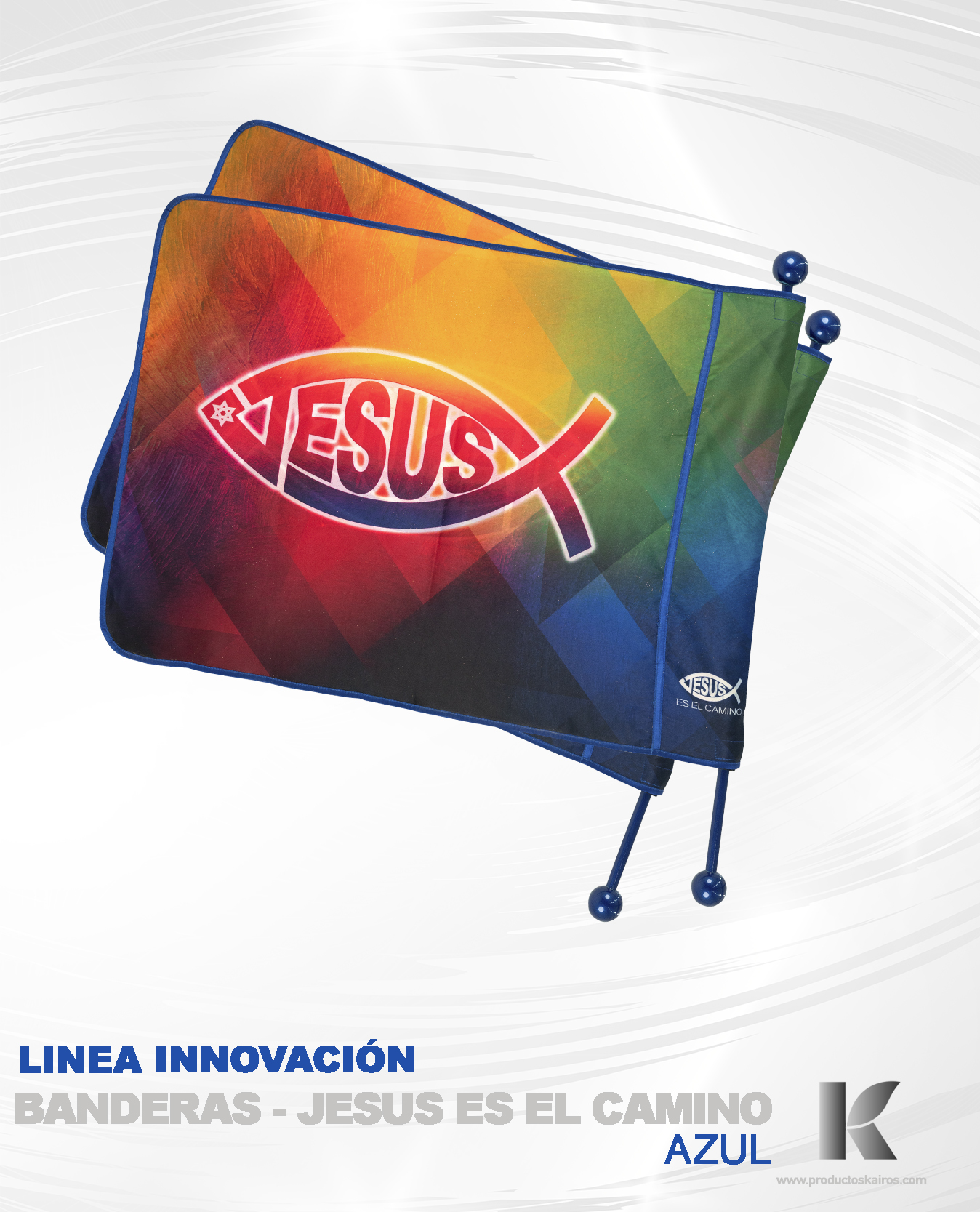 Lanzamos nuestra nueva Línea Innovación – Banderas Jesús es el Camino (LightWeigh flags) Azul.
