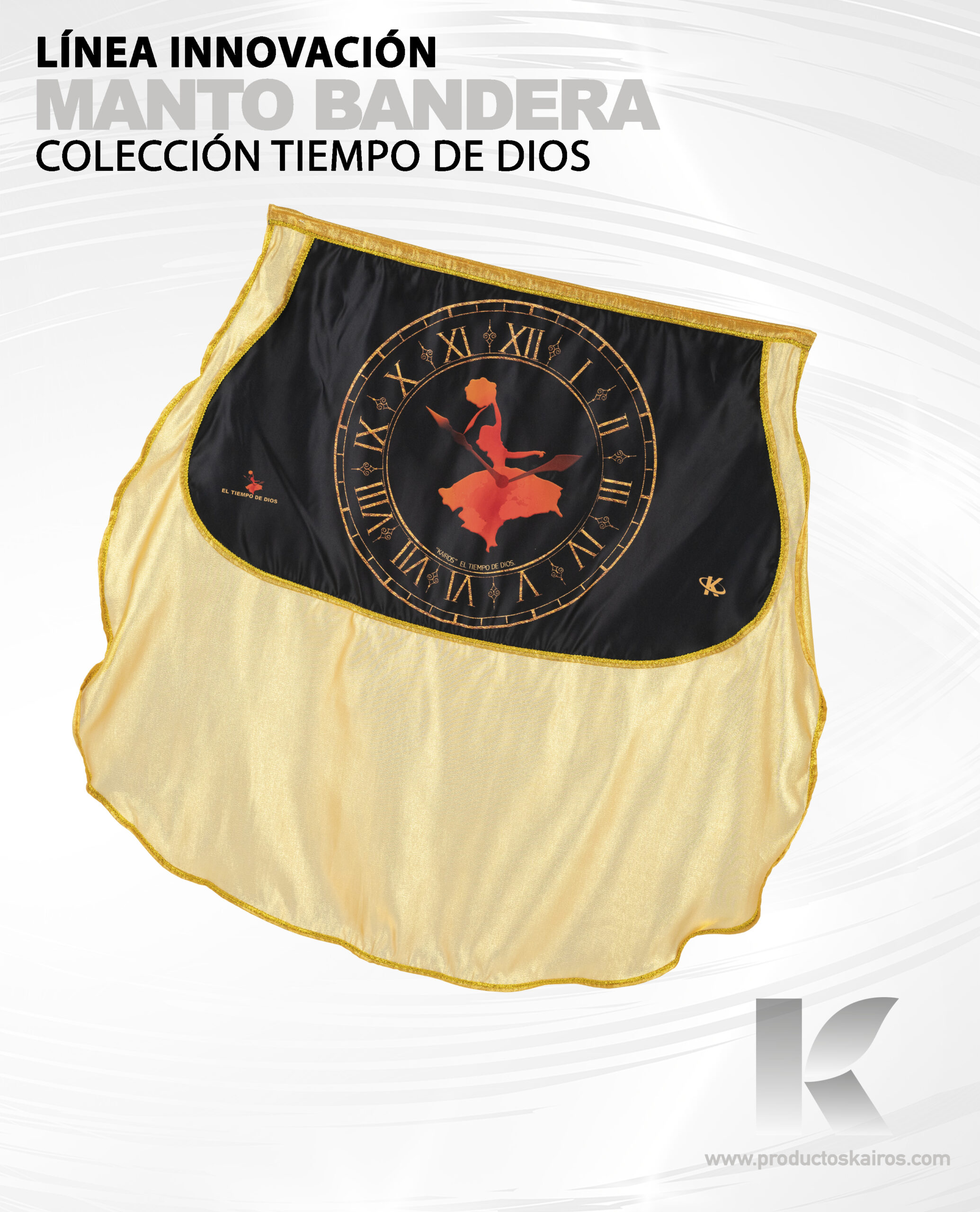 Línea Innovación – Manto bandera Tiempo de Dios. Viene con una asta de madera interna para poder manipularla más fácilmente.