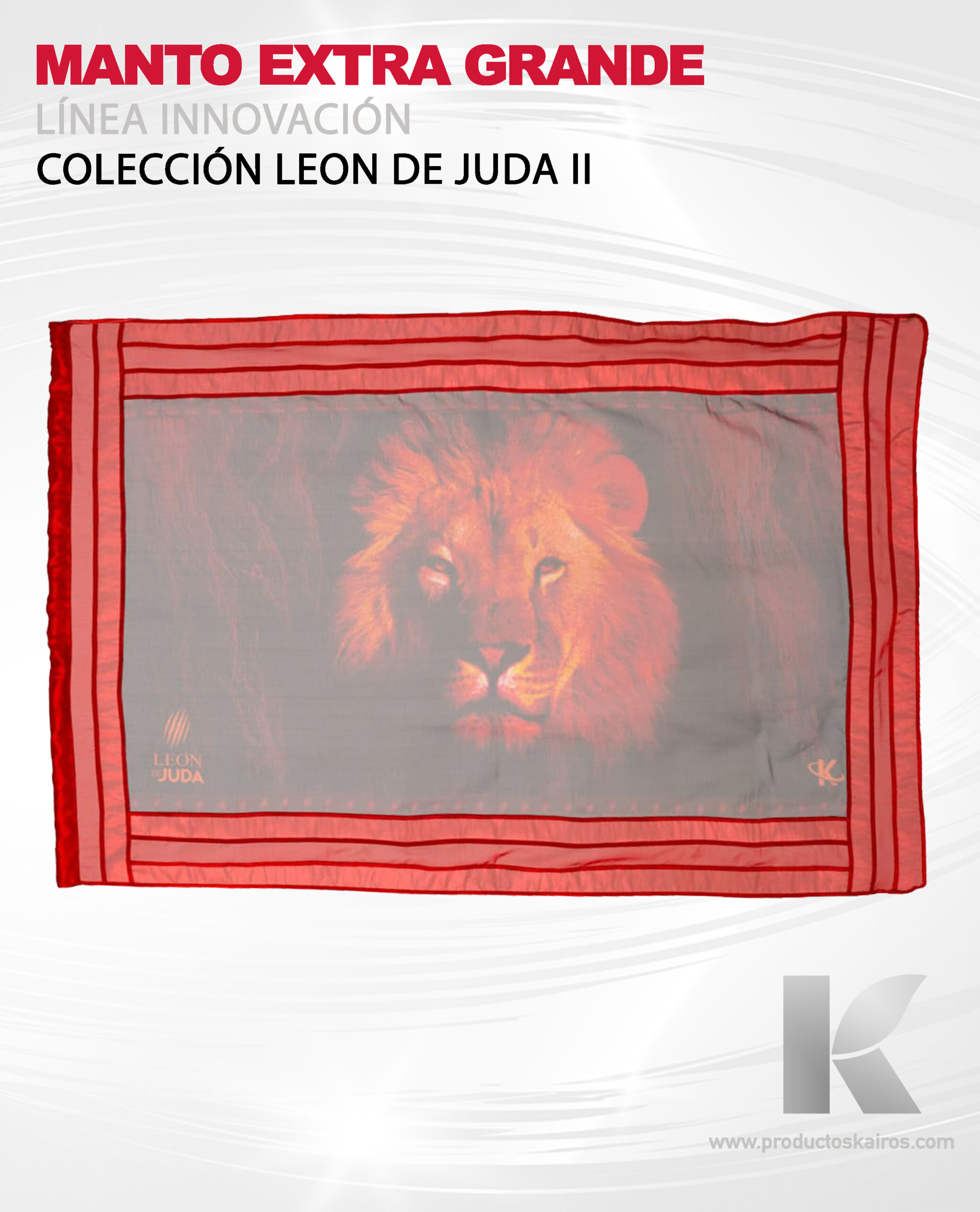 Línea RUAH – Manto Estandarte León de Judá. Elaborado con telas especiales, impresión con tinta térmica, manufacturado con estándares de confección de alta costura y procesos de control de calidad americana, con diseños originales y exclusivos.
