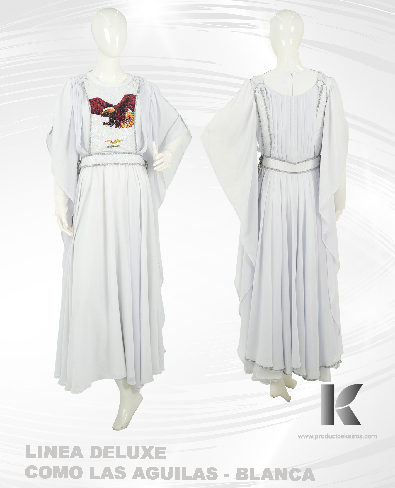 Creado con las telas más finas del mercado, con accesorios de primera calidad y con un diseño original y exclusivo, hacen de nuestros vestuarios unas obras de arte. Los vestimentas Kairos están elaborados bajo controles finos de calidad y con la mejor mano de obra calificada considerados ya prendas de alta costura.
