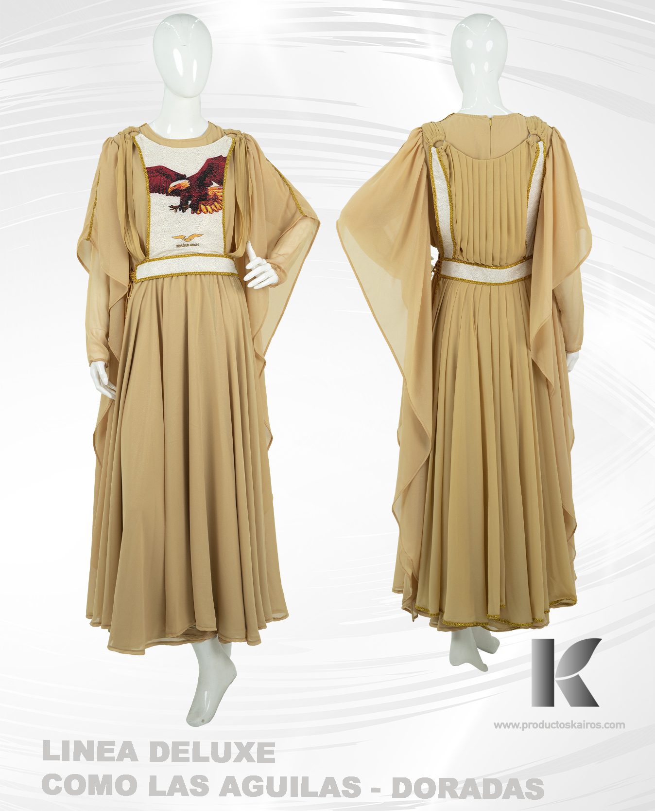 Creado con las telas más finas del mercado, con accesorios de primera calidad y con un diseño original y exclusivo, hacen de nuestros vestuarios unas obras de arte. Los vestimentas Kairos están elaborados bajo controles finos de calidad y con la mejor mano de obra calificada considerados ya prendas de alta costura.